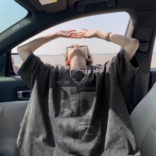 유래미 남녀공용 다크 라운드넥 시원한 순면 반팔 티셔츠