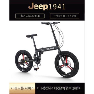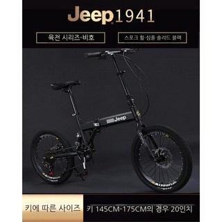 Jeep 미니벨로 20인치 접이식자전거 7단변속 뒷서스펜션, 블랙, 시마노변속기 7단, 1개