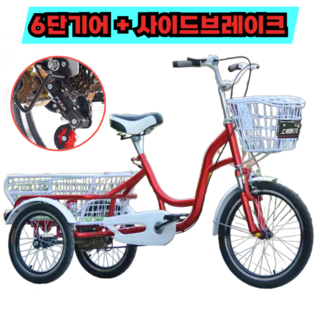 이지라이더 성인용 세발자전거 6단 변속기어 노인용 어른 삼륜자전거, 1개, 160cm, 레드화이트