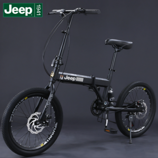 Jeep 접이식 자전거 20인치 폴딩바이크 자동차 트렁크에 실을 수 있으며 남녀 공용 성인 통근 변속 자전거, 20인치 플라잉 타이거 블랙, 1개