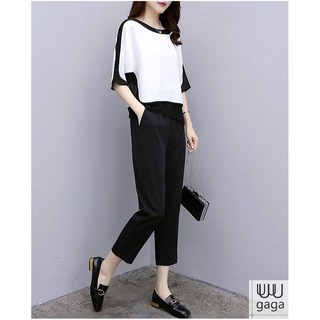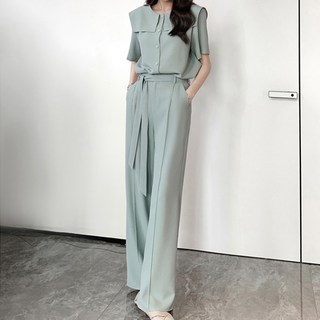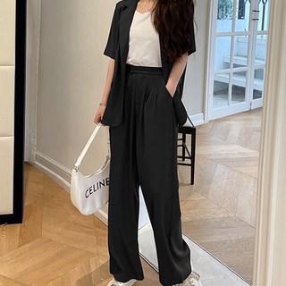페이퍼먼츠 모던 반소매 블라우스 와이드 핀턱 슬랙스 세트 22336
