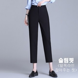 모니따제이 { S~5XL } 블랙정장 빅사이즈 9부 쫀쫀스판 하이웨스트 슬랙스 스키니핏 바지 mn073