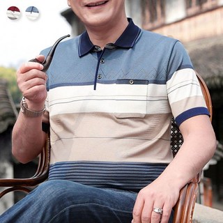 [맥시생활] 캐주얼 남성 여름티 카라넥 포켓 중년 카라티 반팔티 티셔츠 아빠 여름 얇은 스트라이프