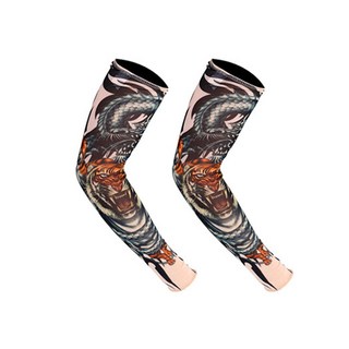 쿨 문신 팔 토시 여름 남성 자외선 UV 차단 작업용 자전거 운전 냉감 타투 토시 2P 1세트, 진(용)