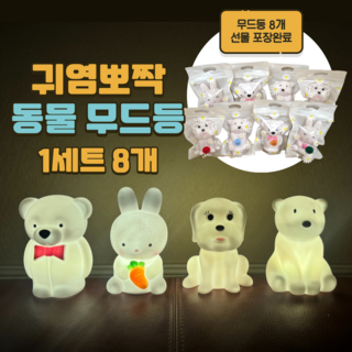 귀염뽀짝 동물 무드등 | 어린이집 유치원 선물 답례품 8개, 1세트, 혼합