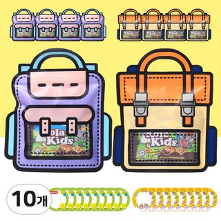 유치원 어린이집 간식꾸러미 어린이 개별포장 단체 간식 답례품 몬스터 손잡이 구디백 생일 선물 세트, 10세트, 구디백(색상혼합)+스티커A02, 색상혼합