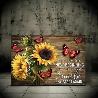나무 액자 캔버스 페인팅영감 해바라기 동기 나비와 인용현대 미술, 1개, 1. 40x60cm(15.75x23.62i