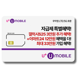 일반유심-U+유모바일 알뜰폰 유심 사은품 증정 LTE/5G요금제 갤럭시S/Z플립6/아이폰16 사용가능