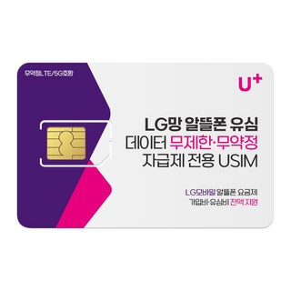 LG망 알뜰폰 유심. LGU+망 알뜰 요금제 / LG유플러스 알뜰폰 / 데이터 무제한 유심 / 자급제 USIM [본사프로모션적용불가], 1개