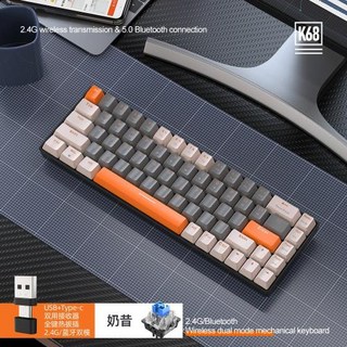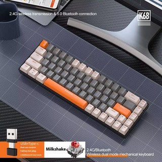 게이밍키보드 Ziyoulang 블루투스 무선 듀얼 모드 기계식 키보드 맞춤형 컬러 매칭 핫 스왑 게임용 K68 68 키, [01] 빨간색 스위치, [03] milk, 적축
