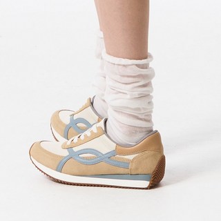 베이직스텝 여성용 빈티지 배색 스웨이드 패션 스니커즈 운동화 3cm EH15