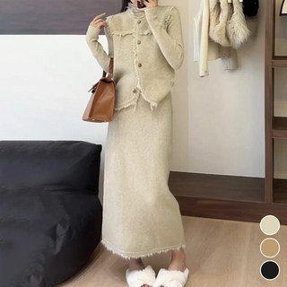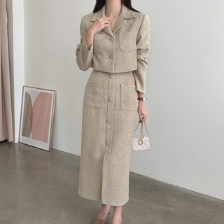 페이퍼먼츠 카라넥 버튼 자켓 + 롱 스커트 세트 22858