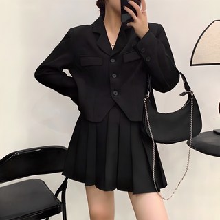 투피스 세트 크롭 자켓 플리츠 미니 스커트 여성 정장 셋업
