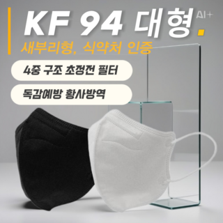 숨쉬기 좋은날 국산 KF94 세부리형 마스크 대형, 검정, 50개, 1세트