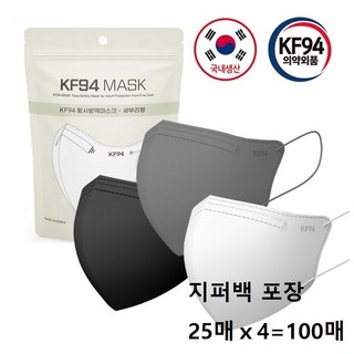 국산 KF94 비말 황사마스크 100매 [세부리형], 4개, 블랙, 25개입