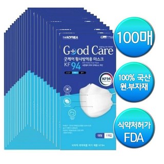 숨쉬기 편한 굿케어 KF94 마스크 국산4중필터 100매 개별포장, 1개입, 100개, 화이트