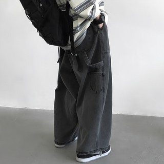 SMOPIG 남성용 와이드 청바지 사계절 밴딩 남자청바지