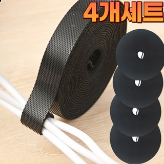 퍼스트 벨크로 타이 반영구 잘라쓰는 케이블 전선 정리 3m 4p, 블랙, 4개
