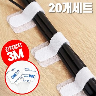 얼띵스 전선 케이블 랜선 벨크로 선 정리 찍찍이 케이블 타이 클립, 화이트, 20개