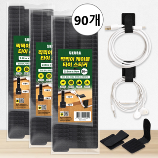 28mm x 90mm 벨크로 케이블 타이 스티커 블랙 30개입 다용도 정리소품, 3개