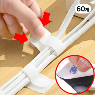 루트리치 선정리 벨크로 케이블타이, 카본 화이트, 60개
