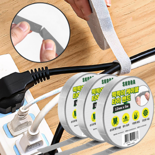 12mm x 5M 벨크로 케이블 타이 테이프 회색 다용도 정리소품, 3개