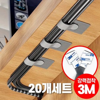 얼띵스 전선 케이블 랜선 벨크로 선 정리 찍찍이 케이블 타이 클립, 그레이, 20개