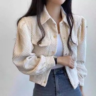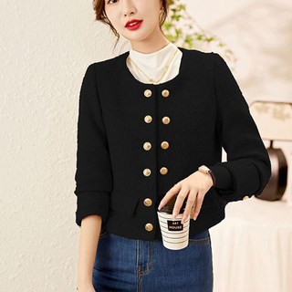 besteffie 여성 봄 가을 빈티지 금속 버튼입체장식 재킷 라운드넥 짧은 자켓 모던 캐주얼 긴팔 상의 K18