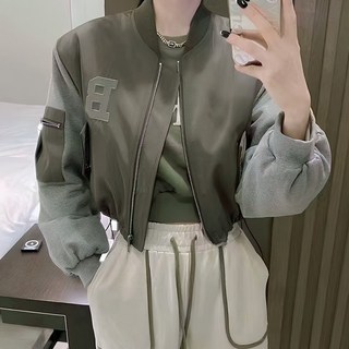 오로나 시놉시스 크롭 블루종 브라운 슬림핏 여성아우터 스트릿패션 스포티 워크웨어 밀리터리룩 밴딩 허리
