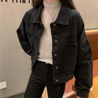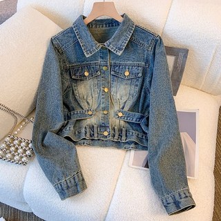 MOSAIRATION 여성 쇼트핏 빈티지 패션 데님 자켓 크롭 카라넥 디자인 청 재킷 루즈핏 V010214