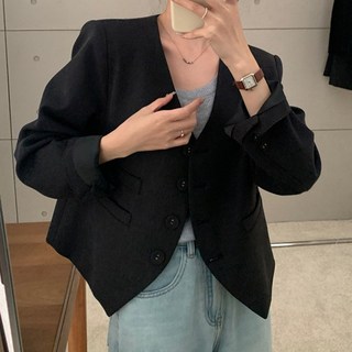 노카라 크롭 여성 숏 자켓 정장 아우터 심플 데일리룩