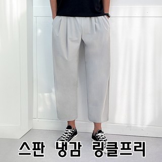 딥스토어 남자 빅사이즈 아이스 여름 핀턱 와이드 스판 크롭 배기핏 벌룬핏 밴딩 팬츠