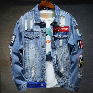 유블리 남성 데님 자켓 라벨 찢청 루즈핏 청자켓 폭스
