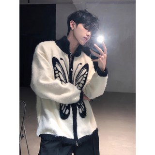 미국 레트로 하이엔드 버터플라이 스웨터 남성 가을 겨울 레이지 스타일 니트 카디건 재킷 트렌드
