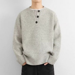 룩플레인 부드러운 루즈핏 헨리넥 반폴라 니트