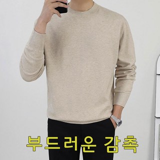 (간절기 필수템) 엘마운틴 남성 라운드넥 니트 티셔츠 부드러운 비스코스 캐시미어 스웨터