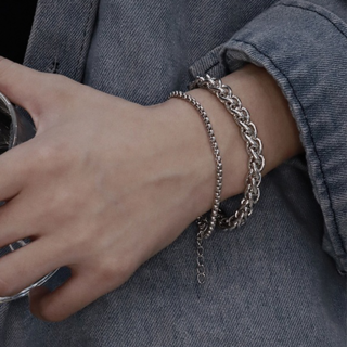베이옴므 남자 써지컬 스틸 더블 레이어드 체인 팔찌