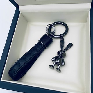 MINTOPMALL 고급 가죽 메탈 자동차 키링, 1개, 블랙