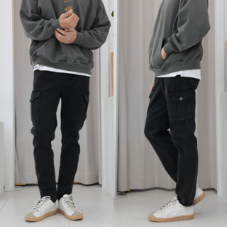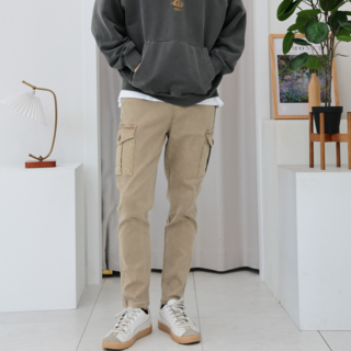 남자 테이퍼드핏 바지 피그먼트 밴딩 스판 카고 팬츠