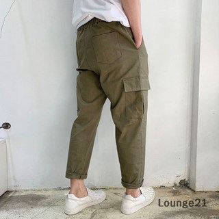 라운지21 남자 밴딩 린넨 9부 스판 카고 와이드팬츠