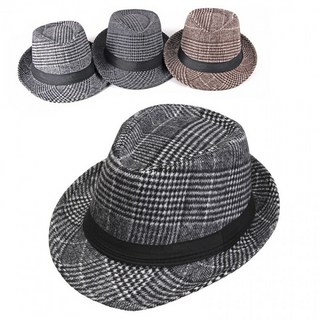 째즈 페도라 댄서모자 데일리 보온 가을겨울 체크무늬