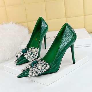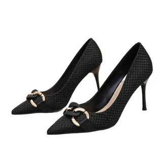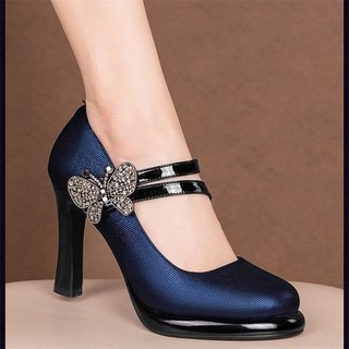 FANSYLI 가보시 힐 여성 일자 버클 패션 리본 스틸레토 힐 중년 엄마 반짝이 큐빅 통근 구두 W2408A15