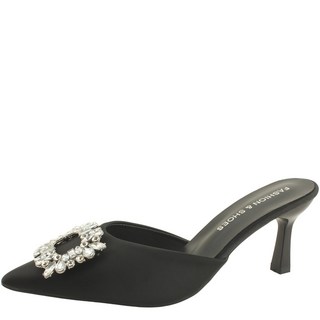 큐빅 새틴 스틸레토힐 뮬 블로퍼 하이힐 슬리퍼