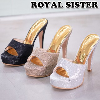 가보시 뮬 슬리퍼힐 반짝이 글리터 리본 보석 장식 하이힐 12cm굽