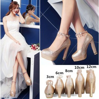 패션 무대 공연 하이힐 여성 두꺼운 바닥 방수대 하이힐 고급 통근 스트랩 하이힐 스팽글 파티 드레스 하이힐 0704PL01