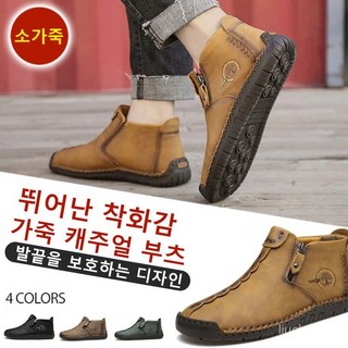 남성천연가죽 앵글부츠 구두 가죽 부츠 레트로 디자인 부츠