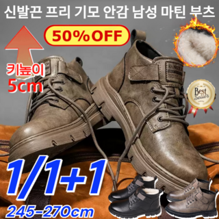 1/1+1 주문폭주!! 신발끈 프리 기모 안감 남성 마틴 부츠 초경량 미끄럼방지 소가죽 하이탑 구두 겨울 영하30도방한화
