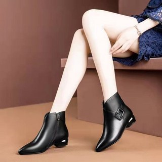 여성 뾰족 발편한 앵클부츠 옆지퍼 가죽 캐주얼부츠3cm