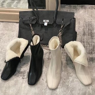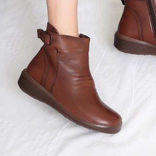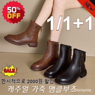 1/1+1 여성 통굽 쇼트 부츠 핸드메이드 소프트 가죽 캐주얼 앵클부츠 기모 앵클부츠 방한부츠
