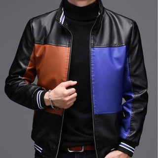 COSYEVNO 봄 남성 가죽 재킷 패치 컬러 패션 슬림핏 빈티지 봄가을 코트